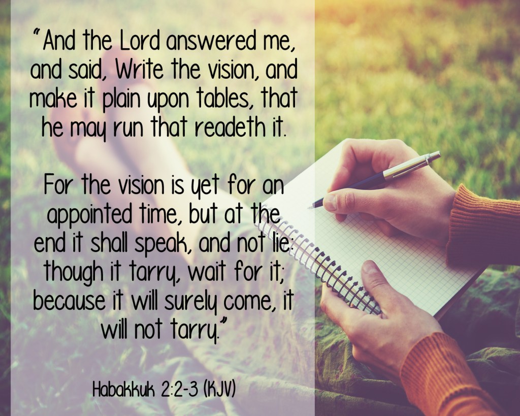 I’m sure you’ve heard in recent times, people say “I’m manifesting a new job” or “you should set intentions so you can manifest…” Manifestation is process. A process, which includes setting goals or writing out intentions, that a person focuses on in order to produce a specific desired outcome. Kind of like when the Lord tells Habakkuk to “Write the vision and make it plain on tablets, that he may run who reads it.”